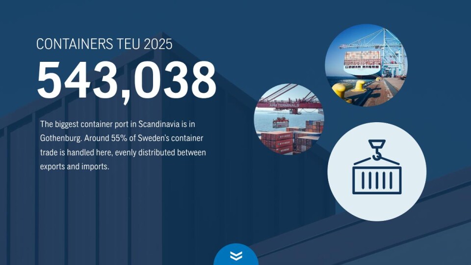 Around 57% of Sweden’s container trade is handled here, evenly distributed between exports and imports.